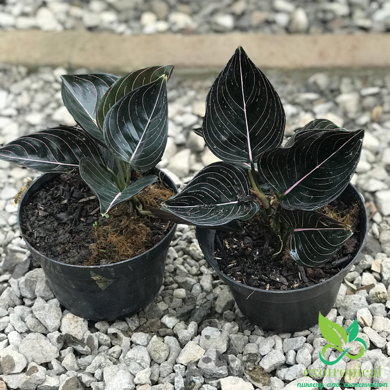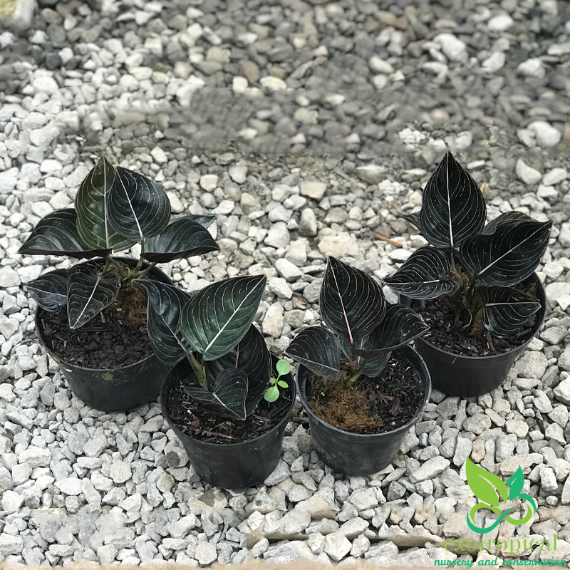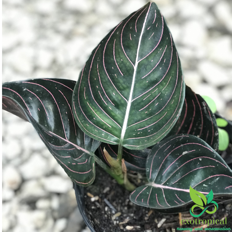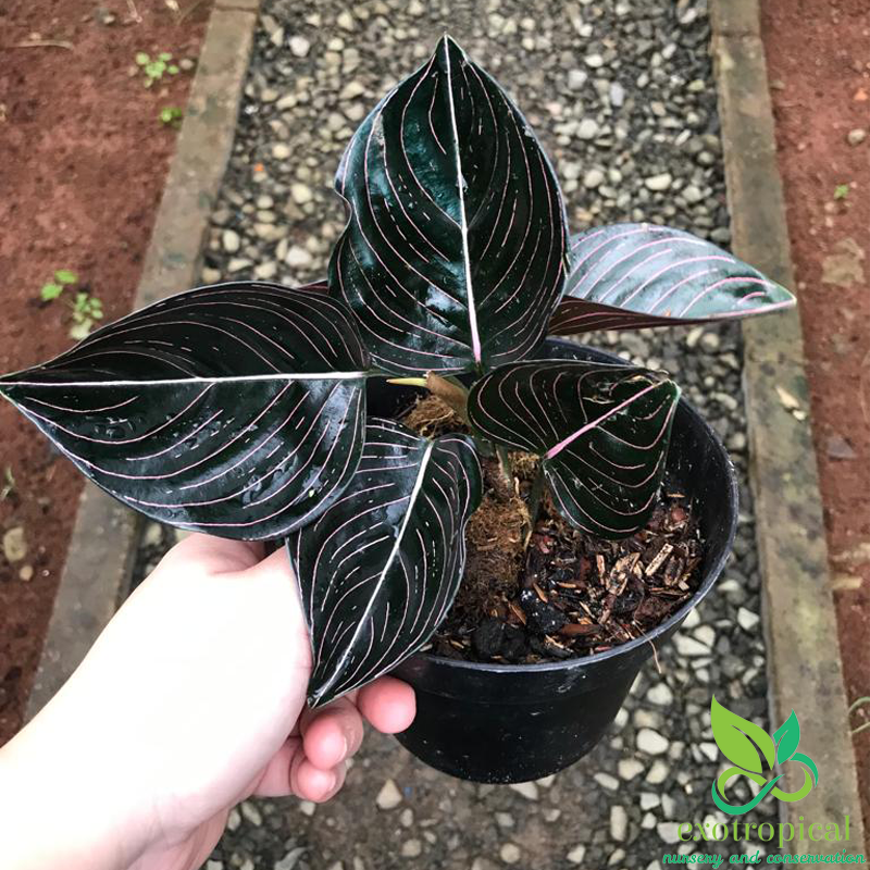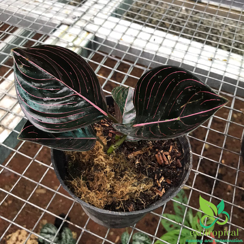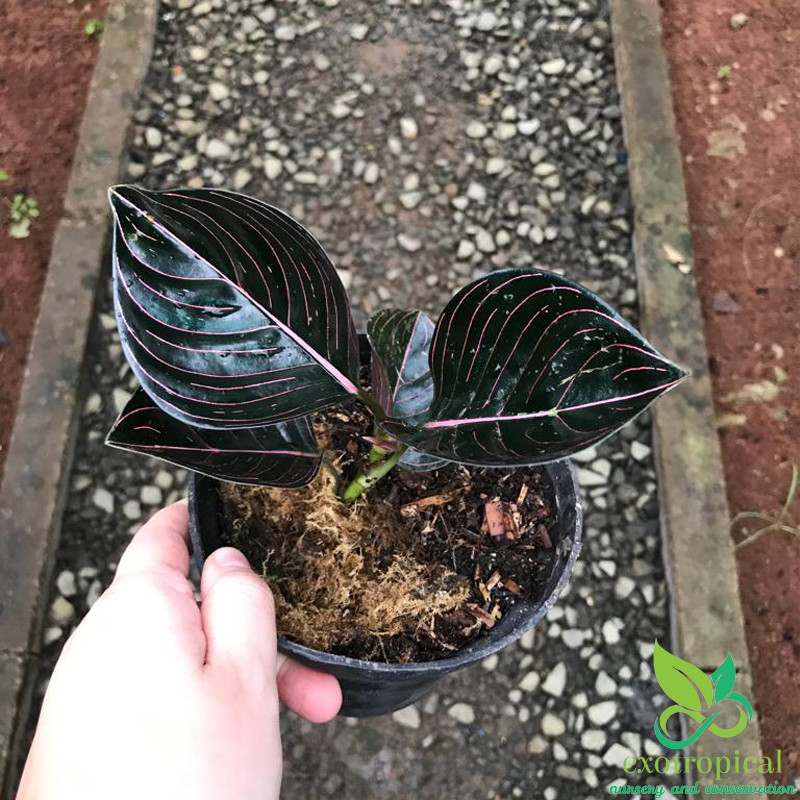 Aglaonema Rotundum is found near a waterfall near Medan in North Sumatra, Indonesia. This plant can grow up to about 50cm and have thick, glossy, elliptic to round, dark green leaves with thin pink stripes on it.