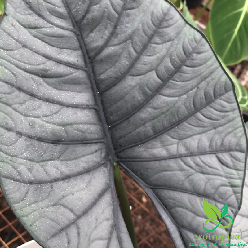Alocasia Reginae was found in Borneo, Indonesia. Their leaves are deep blue-gray with darker veining and red-purple on the back of the leaves as they grow mature.
