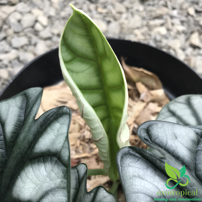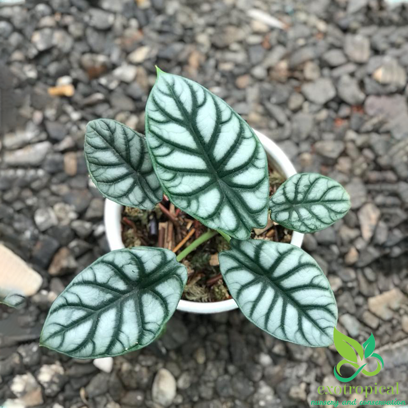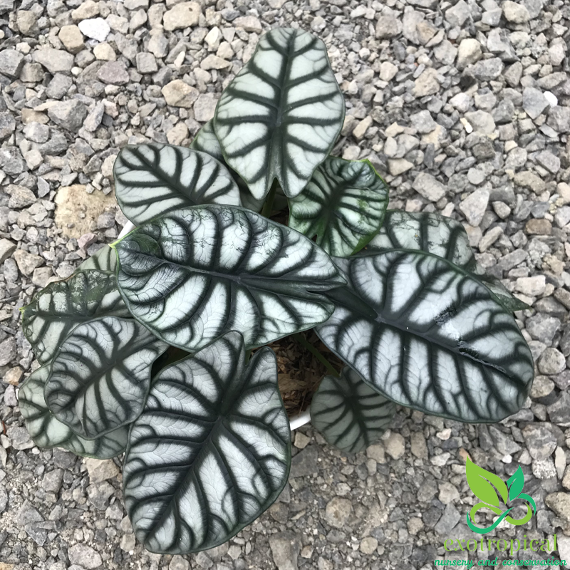 Alocasia Silver Dragon is a very rare beauty with silver green leaves and dark green veins. This plant also has dragon scale texture and native to Eastern Borneo, Indonesia from the calcium-rich limestone regions.