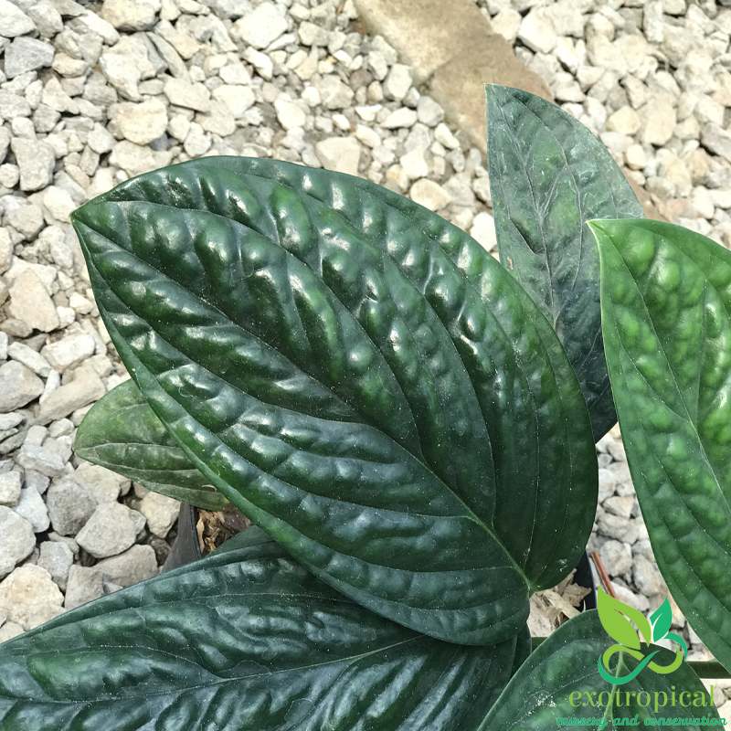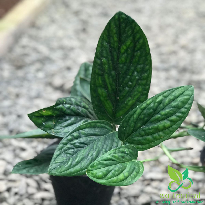 Monstera Karetenianum Sp Peru is native to subtropical, jungle environments. Their leaves are thick, stiff, and have waxy texture that are flecked with light green highlights.