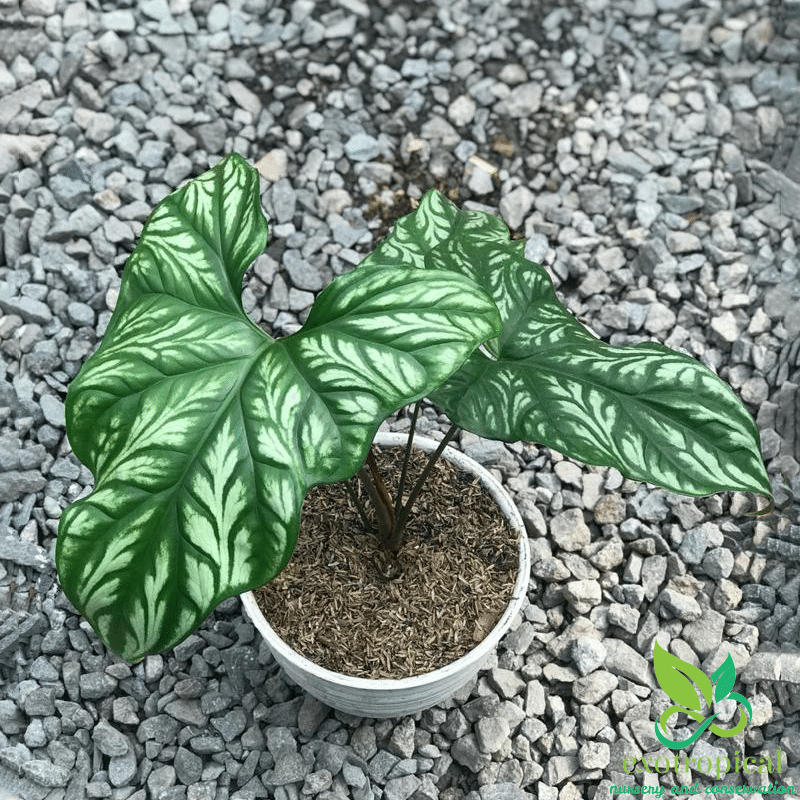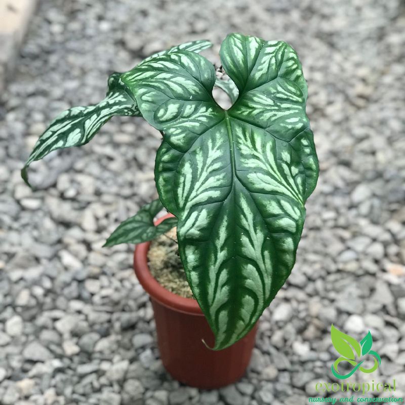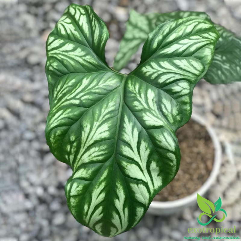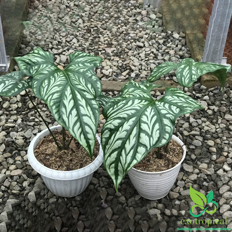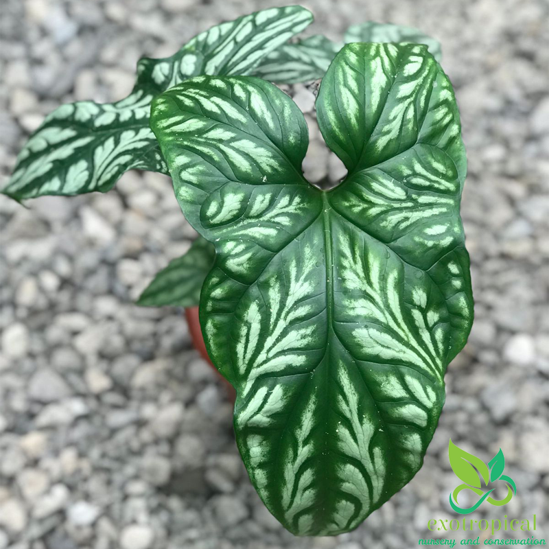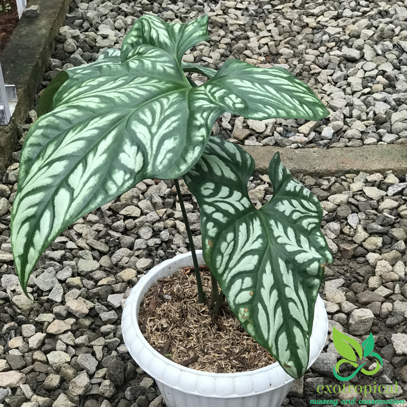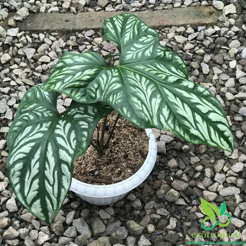 First Found in the tropical west African rain forests of Gabon, Uganda, Cameroon, Equatorial Guinea, Zaire, Benin, Nigeria, and Angola. The leaves have the shape that looks like an arrow head and white embossed markings with patterns like tattoos.
