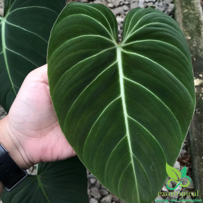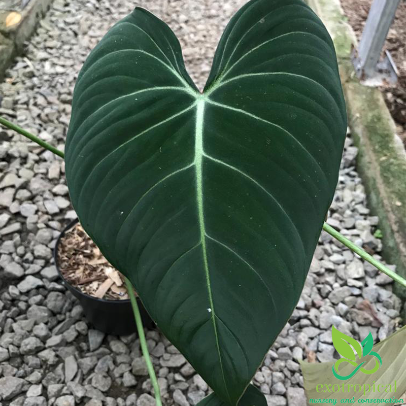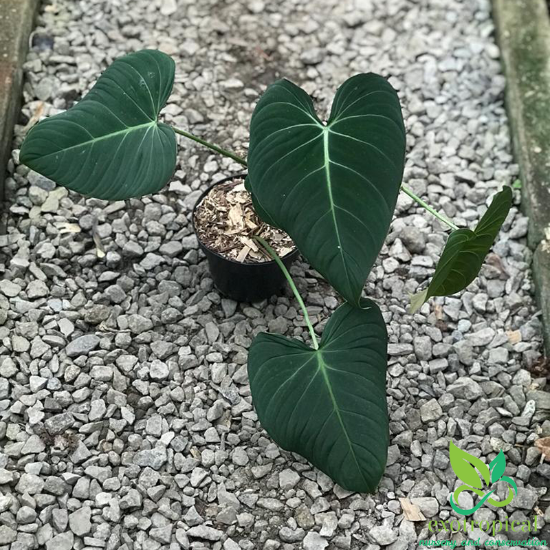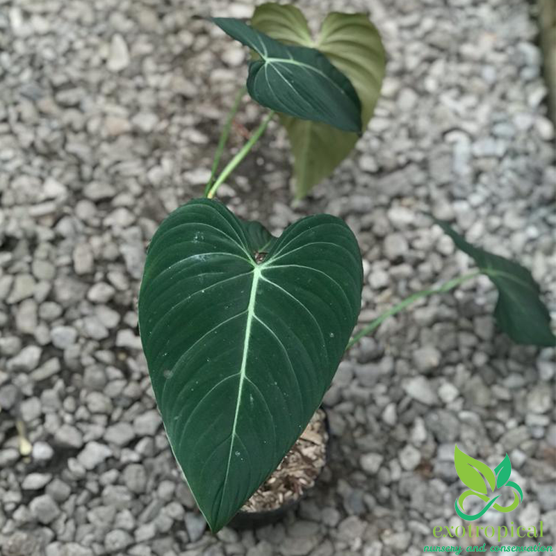 This plant is a hybrid of the philodendron gloriosum and philodendron melanochrysum. They have beautiful velvety, heart-shaped leaves and subtle, white veins.