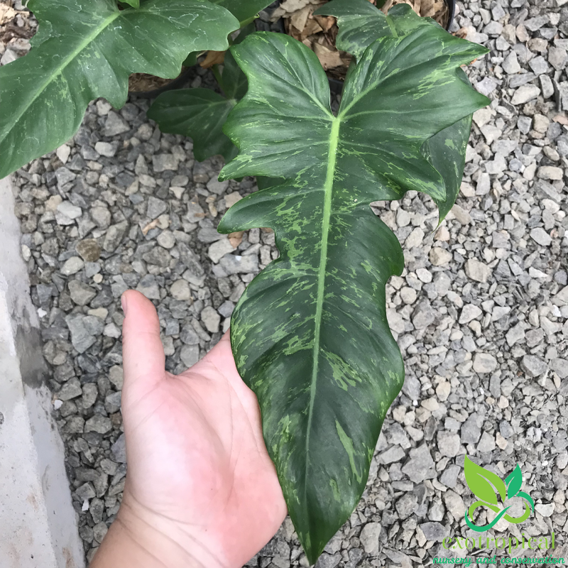 This plant is a hybrid from Thailand. Their leaves look like the head of a dragon and they have shiny green foliage that will get darker as it's getting older and will have golden dust on top of it.