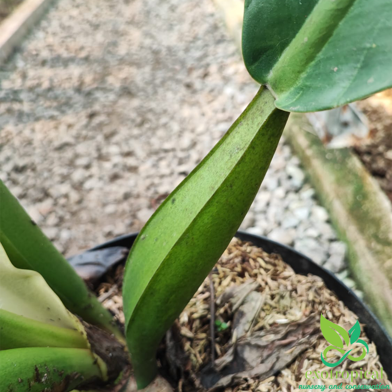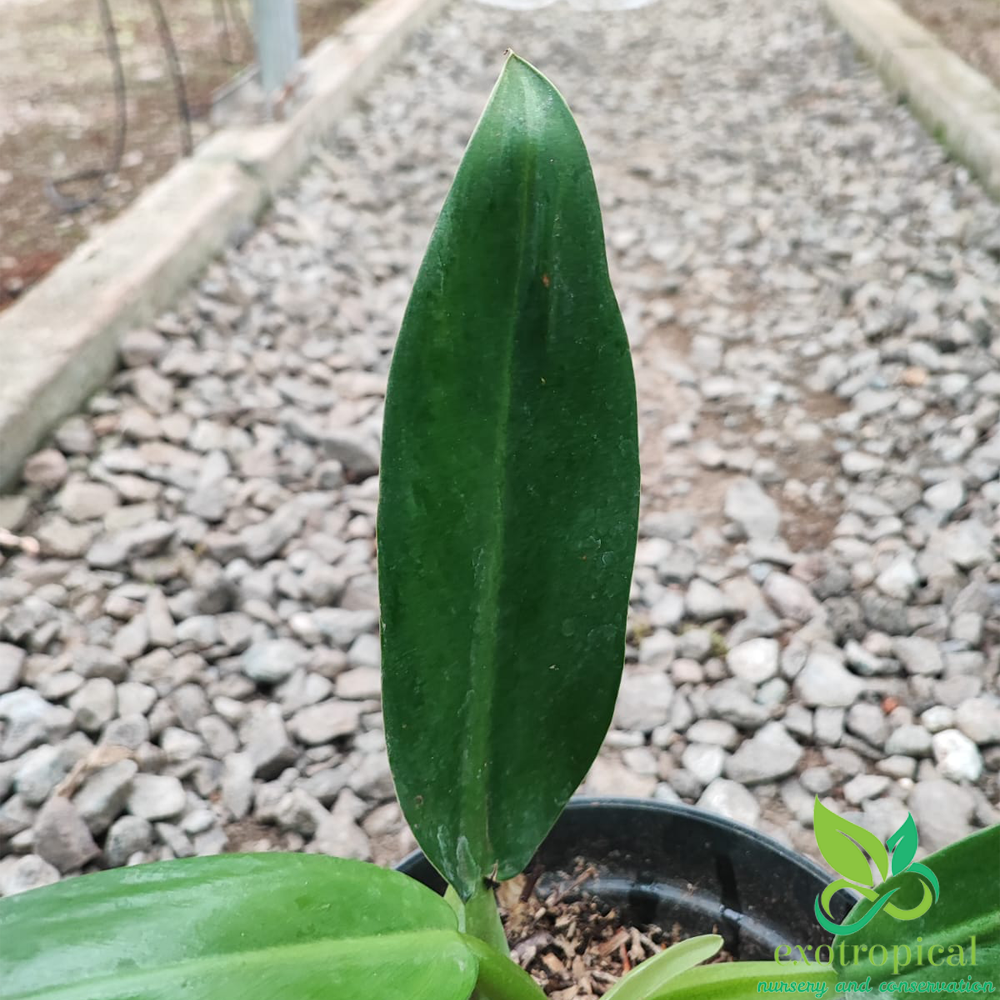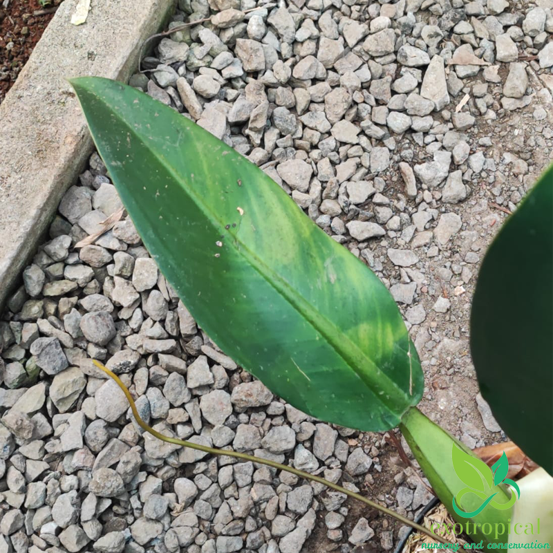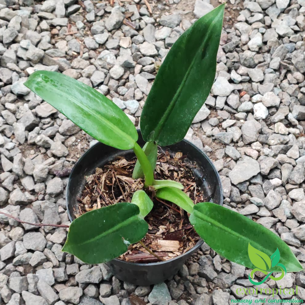 The Philodendron Martianum originates from Brazil. The leaves are waxy and thick green.