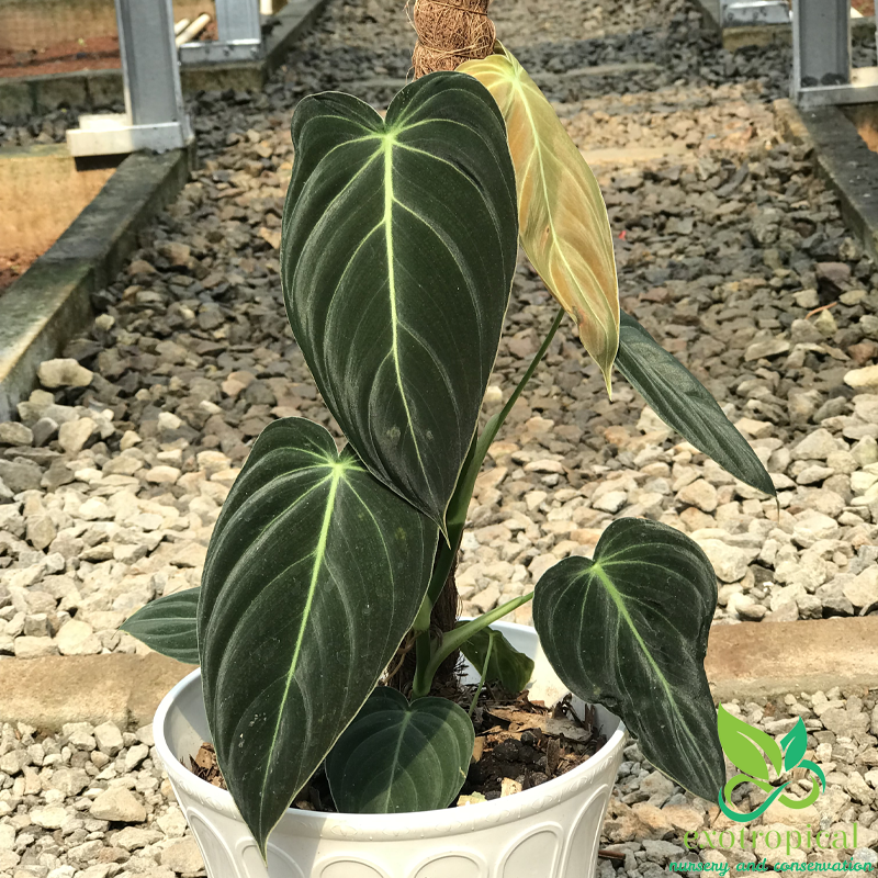 Philodendron Melanochrysum originates from the tropical regions of South America. Some people called them Black Gold Philodendron because the leaves are mostly dark green (almost black) and have a bright yellow like gold on the leaves.