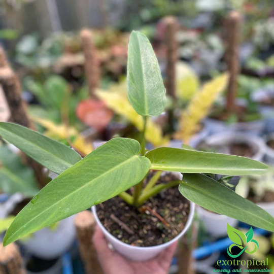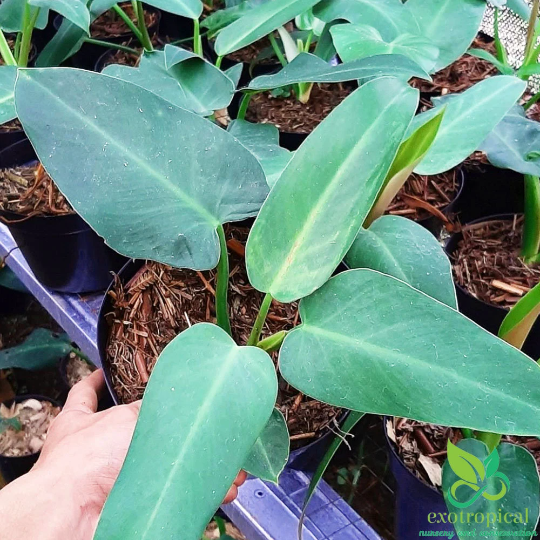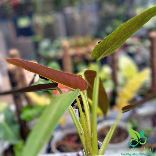 Philodendron Tuxtlanum Red Queen is originally from Brazil. Their leaves are green and long with dark red on the underside.