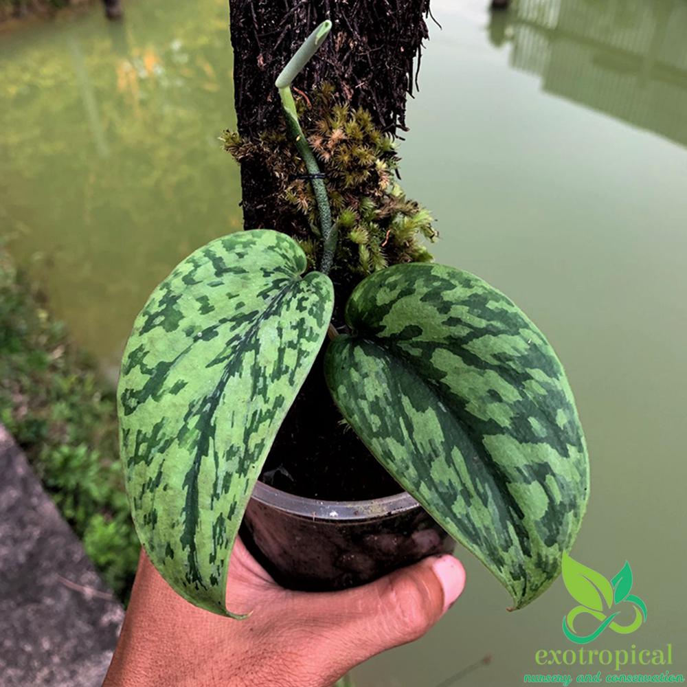 This plant is originally from tropical rain forests Borneo. The characteristic of their leaves are mottled green, military type of look.