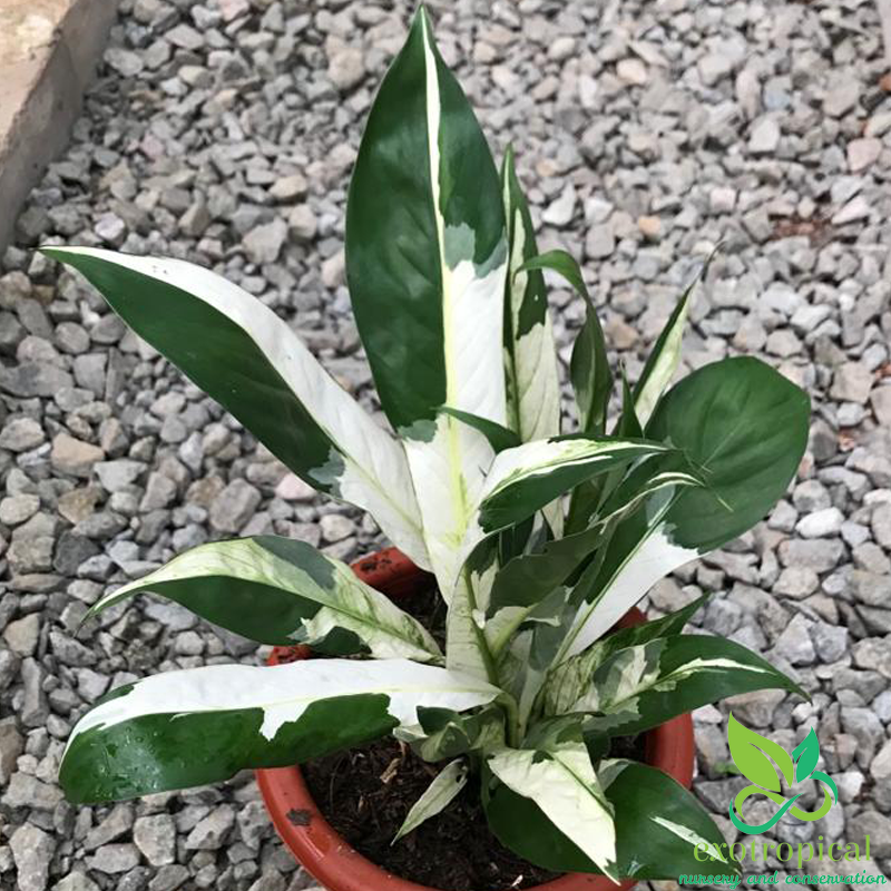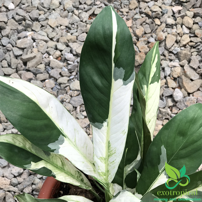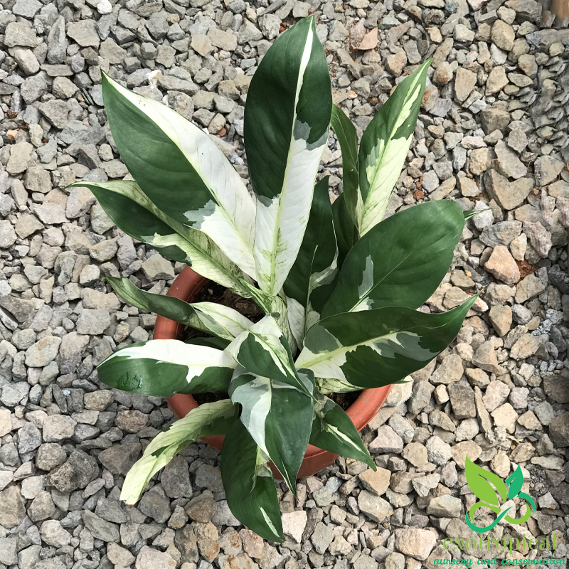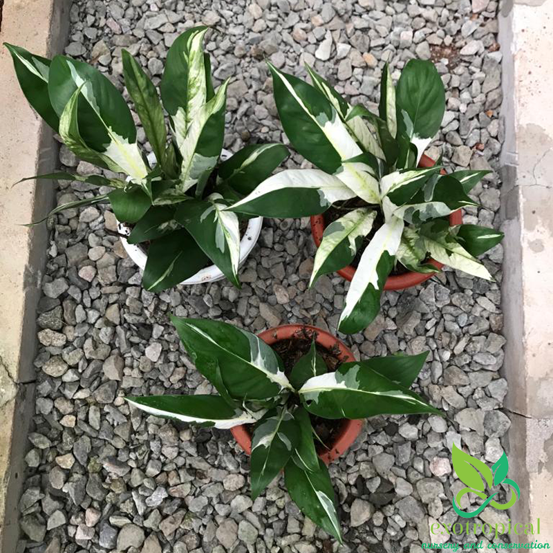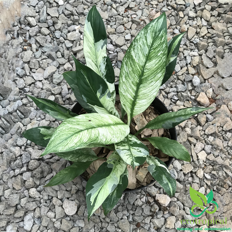 Spathiphyllum Variegated Peace Lily is native to tropical regions of the Americas and southeastern Asia. Their leaves are blotches with white all over each leaf with green based and glossy texture.