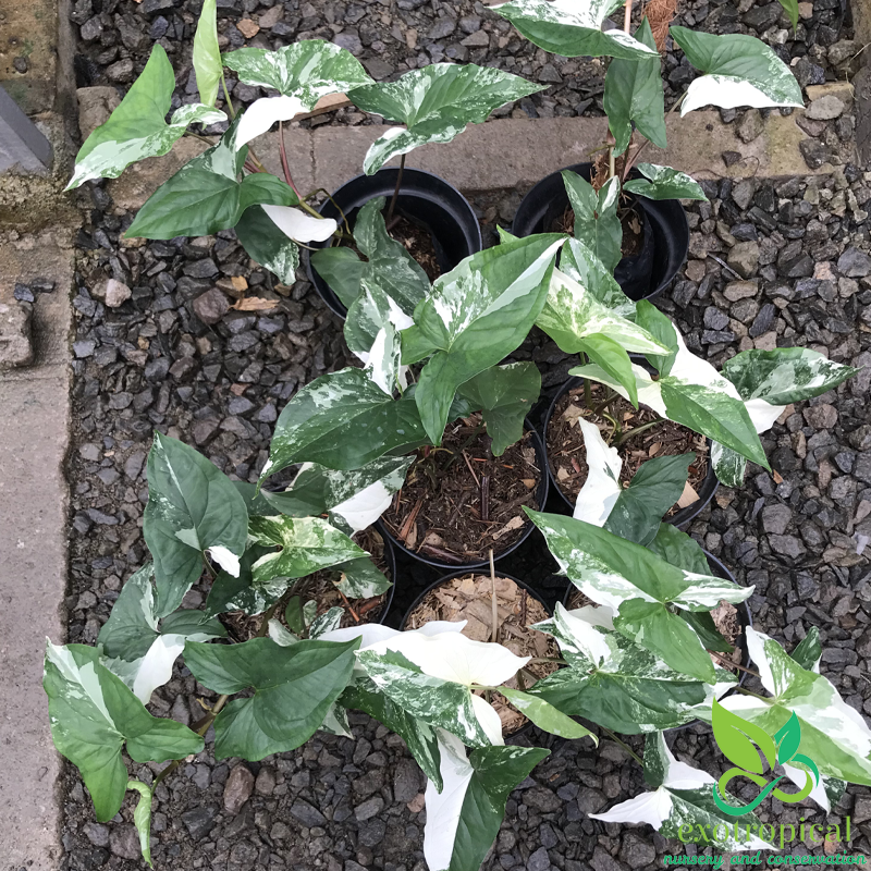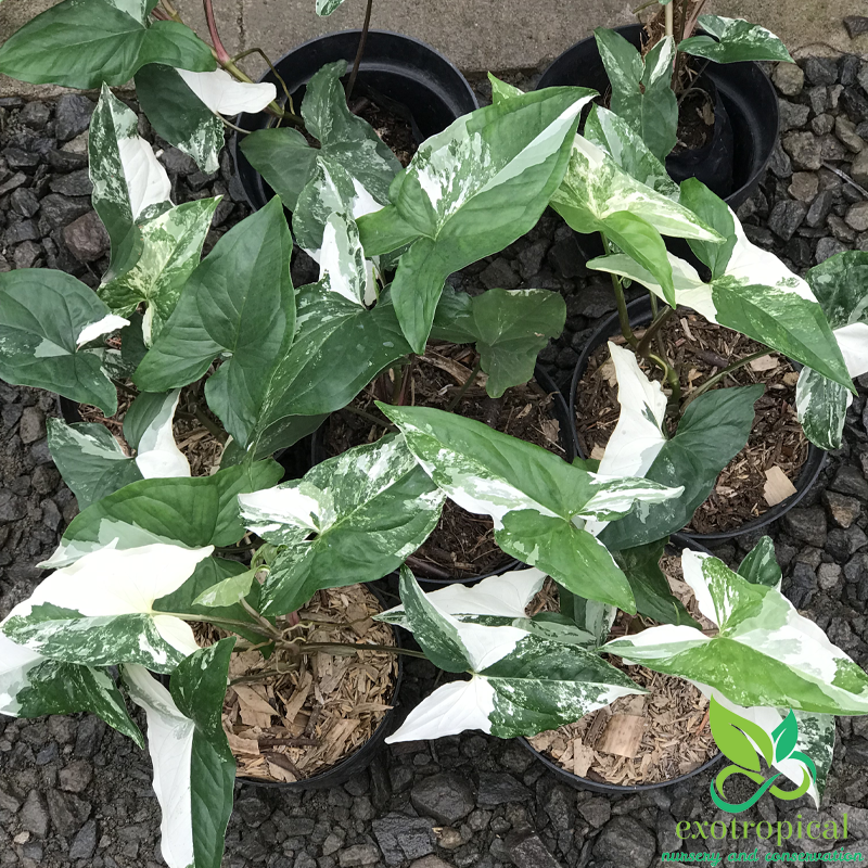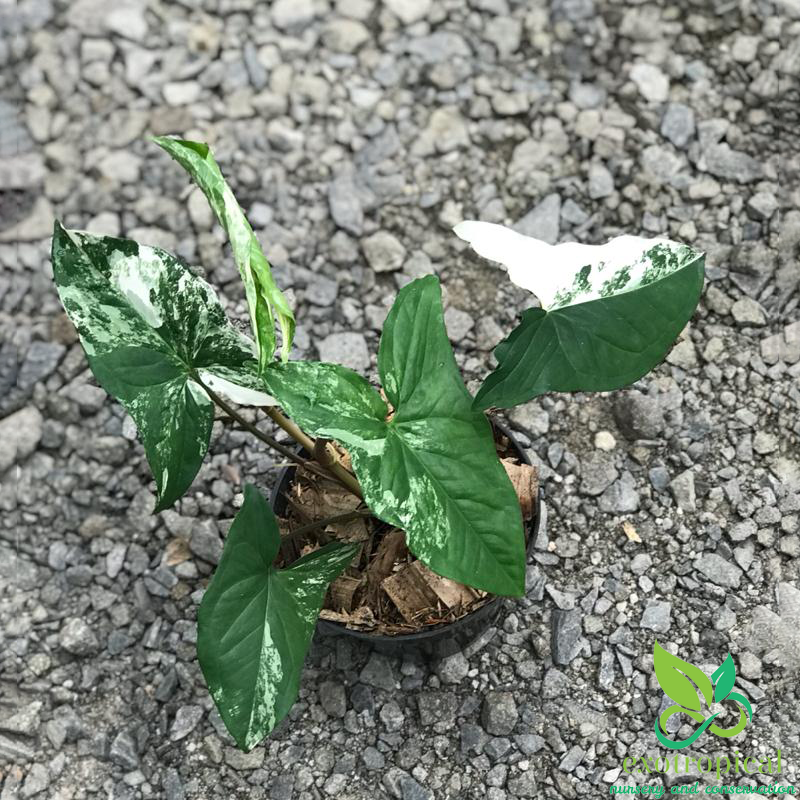 Syngonium Albo Variegated also known as variegated Arrowhead have a mix of green, minty and white leaves. This plant is native to Brazil, Mexico or Bolivia.