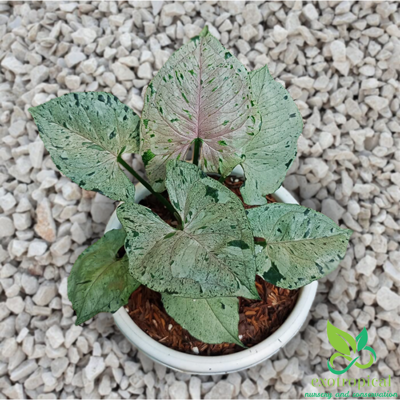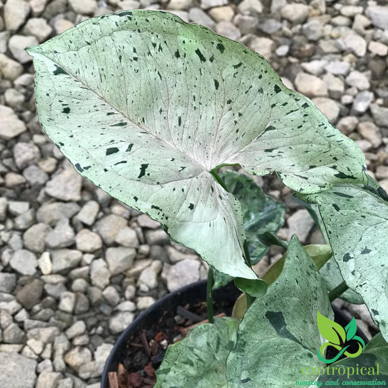 Syngonium Green Splash or also known as Gray Ghost is native to tropical America. This arrow-shaped plant has beautiful bright light green leaf color with green spots spreading all over the leaves.
