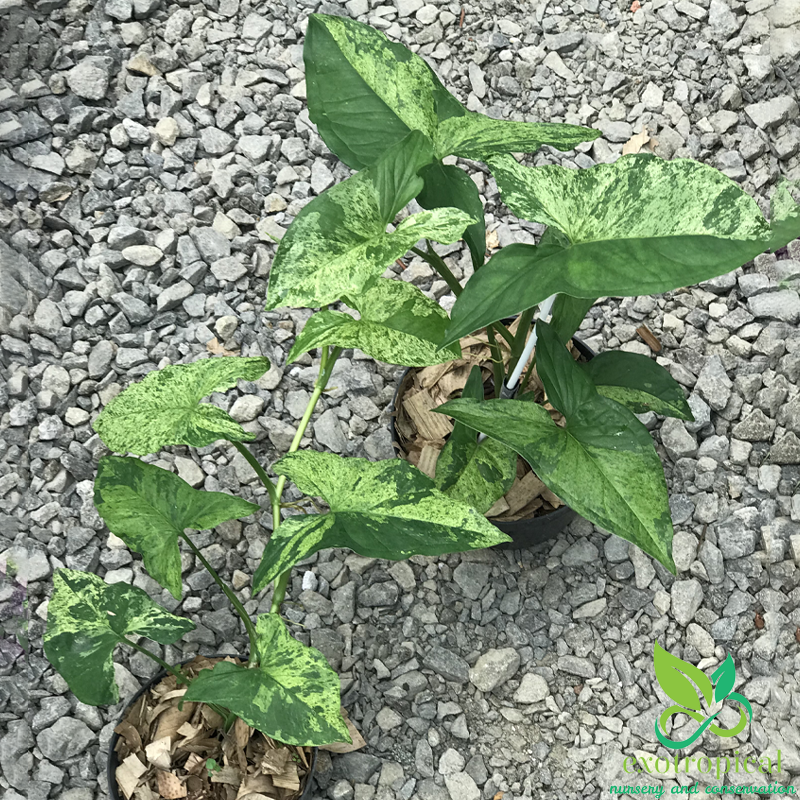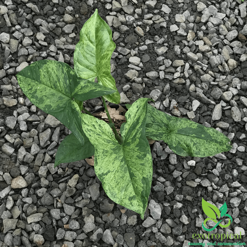 Syngonium Mojito is native to a wide region of Latin America, from Mexico to Bolivia. They have a unique mottled pattern on their leaves (dark greens, lighter greens, and cream greens).