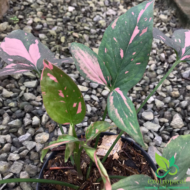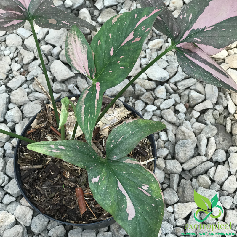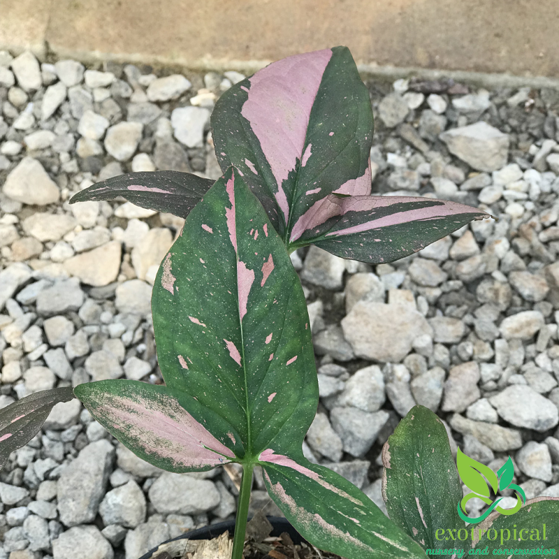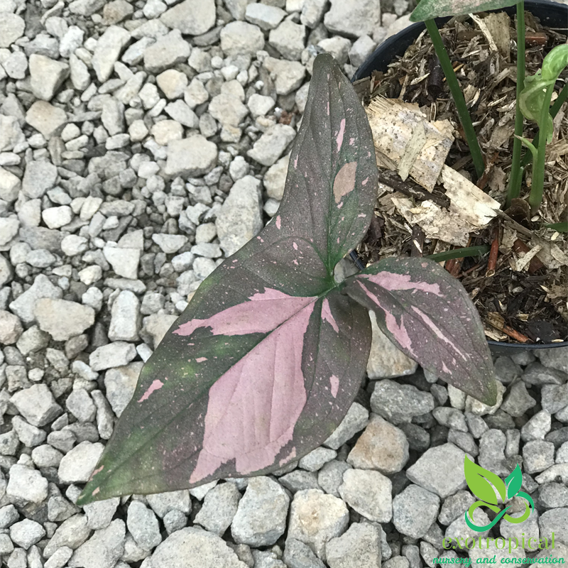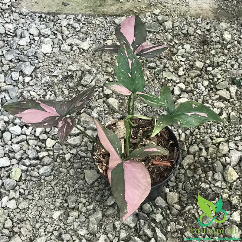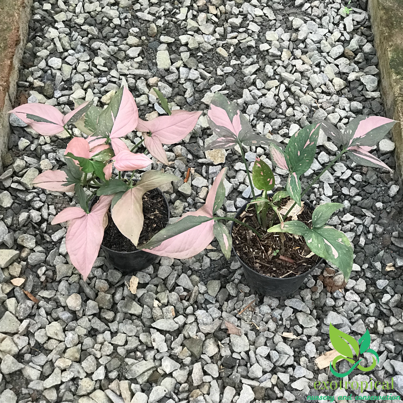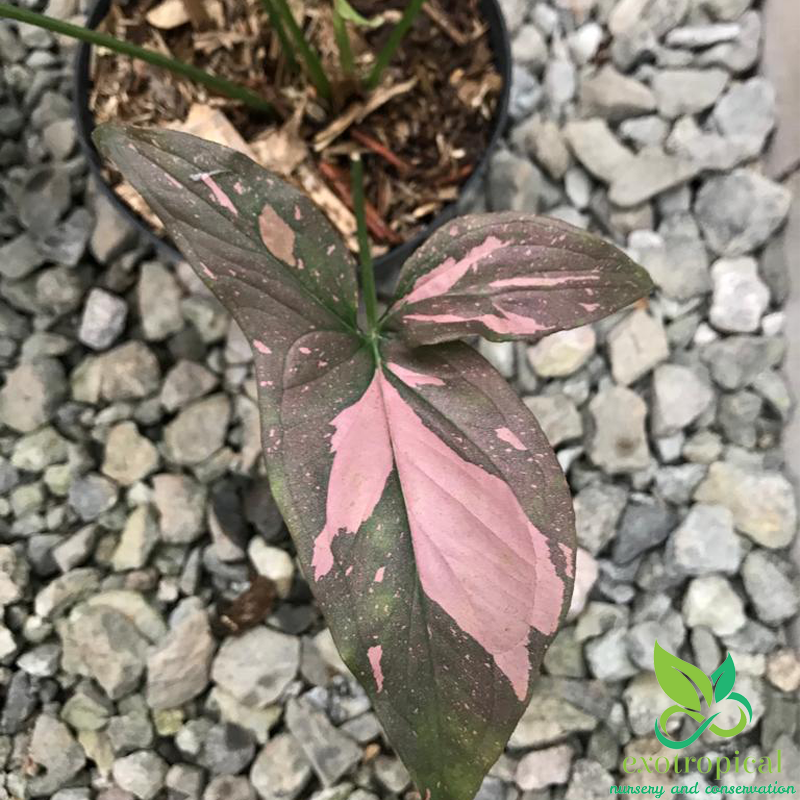 Syngonium Pink Splash is native to tropical rainforests in southern Mexico, the West Indies, Central and South America. Their leaves are shaped like an arrow with a pink splash on it.